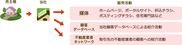 物件を売却するにあたり、3つの方法から販売活動を行っております。